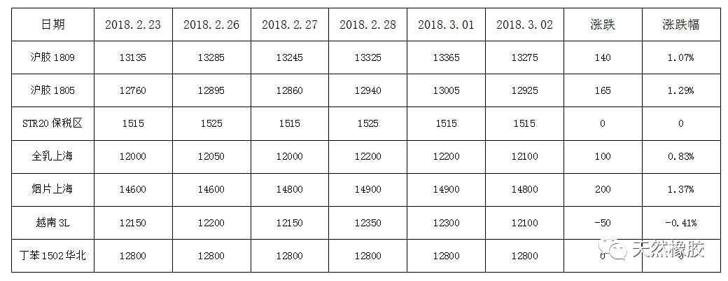 1.库存方面 截止3月2日沪胶库存为437115吨,较上周增加2656吨,前值增加值为220吨,注册仓单396560吨,较上周增加6180吨,前值增加值为900吨,本周期货库存小幅增加。截至3月2日青岛保税区天然橡胶库存 13.26万吨,较上月减少 0.44万吨,合成橡胶再增1.23万吨至11.77万吨,复合橡胶维持 3.9 千吨不变。总库25.42万吨,保税区库存继续创新高。期货库存增加环比小幅增加。 2.需求方面——物极必反 2月9日到3月2日轮企全钢胎开工率 61.01%,半钢胎58.82%,钢胎平均开工率 59.91%,主要受春节下游工厂放假影响,开工率恢复缓慢,预计元宵节后下游工厂开工率会加速回升。 钢胎开工率图表 3.橡胶产业链消息解读分析 3.1环保重压下轮胎企业再涨价 一地上百家企业或不复存在; 3.22017年俄罗斯合成胶出口量同比增3.9% 出口中国降10.2%; 3.3泰印马越4国联手严控橡胶产量和价格。 针对消息1:2018年政府工作报告明确提出严格执行环保、质量、安全等法规标准,化解过剩产能、淘汰落后产能,且《中华人民共和国环境保护税法》已于2018年1月1日开始施行。同时,自3月1日起,京津冀“2+26”城市全面实行大气污染特别排放限制,在规定期限内不达标的企业,将面临停产整治,并处以罚款。未来环保高压下,受产业政策和资金困局影响,中小型轮胎企业倒闭、整合、收购,行业集中度提高的趋势不会改变。 针对消息3:泰国本次会议提出的措施之一:各国建立官民合作的橡胶价格定价机制,不再依赖新加坡等非橡胶生产国的「国际市场中间价」,其核心是建立一个四国联合橡胶价格监管委员会,拥有强有效的定价权机制。 4.供应方面——基本面不容乐观 基础原料方面,近期,据12个农场橡胶树落叶情况抽查和各监测点数据统计,截至2月23日,垦区天然橡胶树落叶率达98%;由于橡胶树物候良好,若无倒春寒等反常气候变化,垦区勐腊农场、勐捧农场等一类植胶区预计将于3月上旬开割;大渡岗农场、勐养农场等二类植胶区将于3月下旬或4月初开割,开割时间普遍比去年提前一个月左右。泰国、印尼、越南、马来西亚目前处于一年一度减产期,可能受政策影响部分产区会执行挺割。 另收集信息如下: (1)澜沧江边华能电站附近30亩橡胶林地出售; (2)景洪市橡胶能卖多少是多少我是遗烛过来的不想管本人在昆明; (3)1500亩橡胶树地低价出租或出售,可改种; (4)勐腊橡胶地开割3年2300棵橡胶树出售,树龄11年,位于景洪至橄榄坝方向6公里; (5)宁先生 : 520亩橡胶林出售出租; (6)因资金周转现急需800棵胶树出售,海拔500~600米 已开割12年以上只列取了很少很少一部分,请看如图所示: 5.一周橡胶价格市场回顾 6.小结 未来环保高压下,受产业政策和资金困局影响,中小型轮胎企业倒闭、整合、收购,行业集中度提高的趋势不会改变; 总体来说环保对于未来下游需求会起到一定的抑制作用;就泰国联合四国会议政策解读其目的是为了建立一个四国联合橡胶价格监管委员会,拥有强有效的定价权机制; 2017下半年起胶水价格过低,降低了胶农割胶的积极性,通过对西双版纳63家胶农调查了解到胶农对于2018年胶水的价格比较悲观,(尤其是下半年胶水价格),临近割胶季到来,割胶工人难招,滋生出了大量的胶园出租转让。下周我们给大家讲下期货沪胶仓单的成本分析; 下个月重点分析贸易商是如何现货结合期货做非标套利以及套保分析。