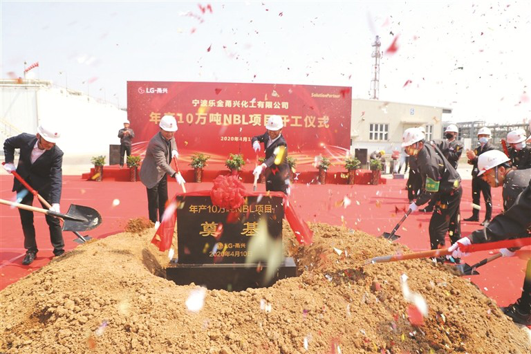4月10日,宁波LG甬兴化工有限公司年产10万吨丁腈胶乳(NBL)高分子材料项目,举行开工奠基仪式。